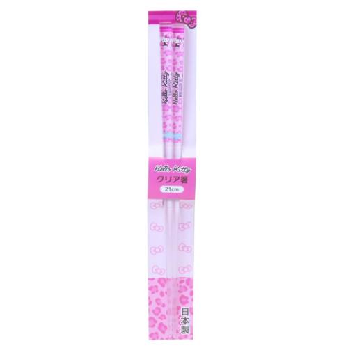 ハローキティ クリア箸 21cm サンリオ おはし キャラクター ヒョウ柄 ピンク