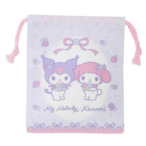 巾着袋 マイメロディ&クロミ 巾着S きんちゃくポーチ サンリオ パープル 新学期準備雑貨 幼稚園 小学生