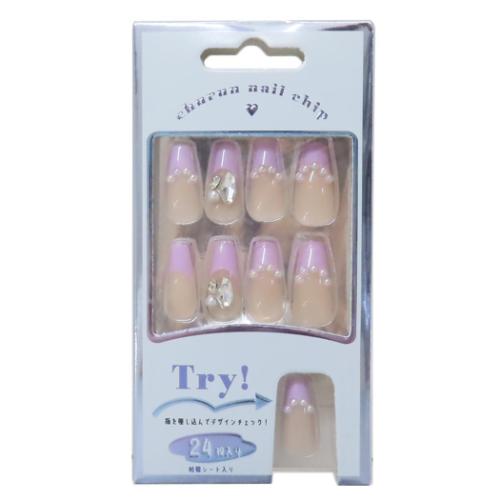 コスメ雑貨 ネイルチップ ロングスクエアタイプ PURPLE FRENCH カミオジャパン