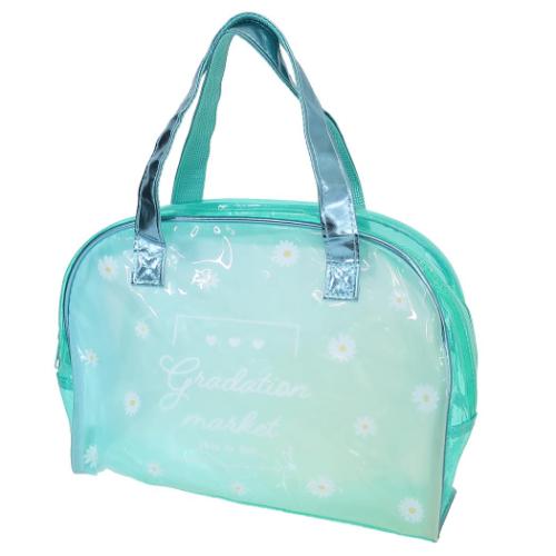 「プールバッグ」 プールバッグ ボストンバッグ グラデデイジー 粧美堂 海やプールはもちろん、キャンプ等の時にも大活躍のビーチバッグ 夏の定番アイテム[ビニールボストンバッグ]にNEWデザインが登場大き目のビニール製でプールバッグにぴったり海やプールはもちろん、キャンプなどの時にも大活躍しちゃうプールバッグいろいろあるのでお気に入りをさがしてください。サイズ:約330x235x100mm カラー/グリーン系(緑) おしゃれ/ビニールバッグ/プールかばん/小学生/キッズ