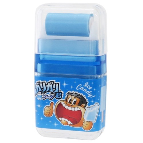 「消しゴム」 消しゴム おやつマーケット グッズ ガリガリ君 ローラー ケシゴム ソーダ サカモト アイスキャンディの定番「ガリガリ君」ステーショナリーシリーズ 夏の定番アイスキャンディ「ガリガリ君」の可愛いステーショナリーシリーズがさらに可愛くなってリニューアルこちらはとっても可愛い「ローラー付き消しゴム」消しカスが集められるローラー付きプラケースに入っています。キレイ好きの方はたまらない同デザインの文房具ほかにもあるのでお揃いにしちゃおうサイズ:約30×50×18mm カラー/ブルー系(青・紺・ネイビー) 小学生/中学生/景品/子供会/文房具