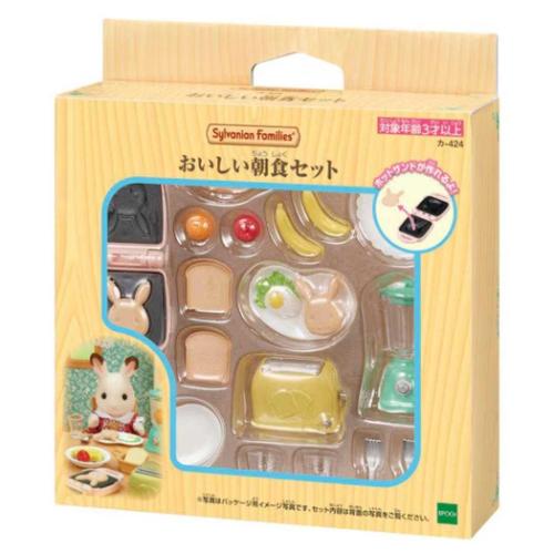 「マスコット」 マスコット シルバニアファミリー カー424 おいしい朝食セット Sylvanian Families コレクション雑貨 コレクションしたくなる可愛さ 大人気シルバニアファミリーからまたまた可愛いアイテム登場2人分の朝ごはんがセットになっています。朝ごはんと、調理器具のセットです。目玉焼き、食パン、フルーツが入っています。食パンはトースターにセットして遊べます。レバーが動かして、トースト焼き遊びができます。シルバニアグッズいろいろあるのでお気に入りをみつけてくださいパッケージサイズ:約130x145x60mmセット内容:トースター、ホットサンドメーカー、ミキサー、カップ、フタ、モーニングプレートx2、皿、バスケット、フォークx2、コップx2、食パンx2、ホットサンドx2、バナナx2、リンゴ、オレンジコピーライト:EPOCH 置物/人形 小物/コレクショングッズ/人形用 パーツ/ディスプレイ