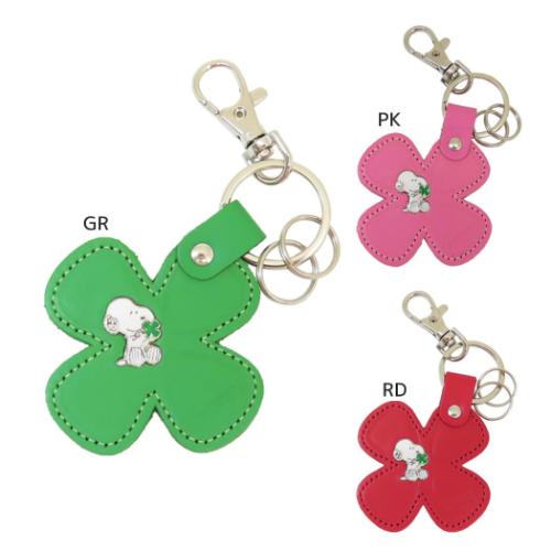スヌーピー ピーナッツ キャラクター キーリング レザーキーホルダー クローバー2 グリーン ピンク レッド