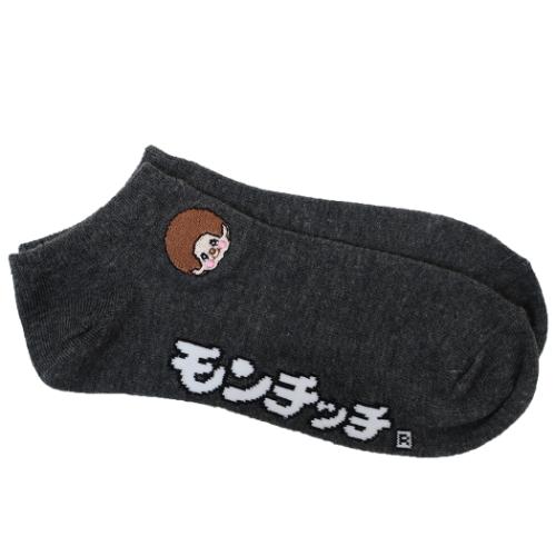 モンチッチ 女性用靴下 レディース ワンポイント刺繍アンクルソックス チャコール モンチッチ ウイックス【メール便可】