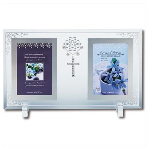 「取寄品」 「フォトフレーム」 2ウィンドウ ファミリーフレーム お洒落 十字架 ギフト 複数窓 写真立て インテリア 雑貨 ユーパワー 31.5×18cm ガラス フォトフレーム クロスチャーム 輝くミラーとクロスの高級感 ゴージャスなデザインを施されたミラーと、高級感のあるクロスのチャームがアクセントのフォトスタンドです。クリスタルが煌めくエレガントなフレームで、プレゼントにもおすすめです。・サイズ:315×180×10mm・写真サイズ:サービスサイズ(89×127mm)×2枚・材質本体:透明ガラス(ミラープリント)チャーム:亜鉛合金(シルバーメッキ)/クリスタルジュエリー・仕様:卓上用 アクリルスタンド付き「お取り寄せ」こちらの商品はお取り寄せ商品です。約3日〜10日の日数をご了承下さい。 お祝い/贈り物/ギフト/ウェディングギフト/ご結婚お祝い