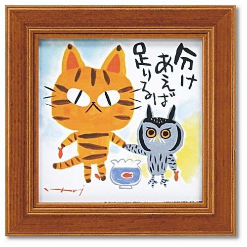 「取寄品」 「和風」 ねこ ふくろう 額付 ポスター 分けあう メッセージアート ギフト インテリア グッズ ユーパワー 幸運を運ぶフクロウ 奈良町の風情とふくろう、たくましく生きる野良猫を描いたパワーのある作品です。ちょっとした感謝の気持ちや日頃からお世話になっている方へ、心温まる贈り物です。作家:糸井 忠晴(日本男性作家)奈良町の墨彩画家。ファンから元気になる絵と親しまれる。古き町屋の情緒とそこに住むのら猫や四季をテーマに描く。・サイズ:120×120mm・重量:約0.2kg・材質:樹脂フレーム/ガラス・仕様:壁掛・卓上両用「お取り寄せ」こちらの商品はお取り寄せ商品です。約3日〜10日の日数をご了承下さい。 開運/猫グッズ/ねこ雑貨/額つき/置き物
