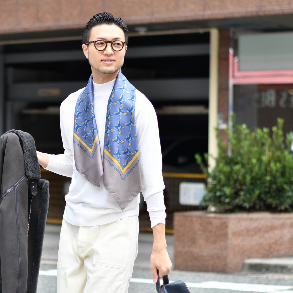 ブランド創業一家に受け継がれるハンティング文化から着想を得たダック柄を採用。遊び心のあるデジタル調のタッチと、鮮やかながらも繊細な色合わせは品よくコーディイネートに馴染みます。また、上質なシルク100%の生地が生み出す艶やかな見た目は、アウターはジャケットからブルゾン、パンツはデニムからドレッシーなスラックスまで相性が良く幅広くお使いいただけます。