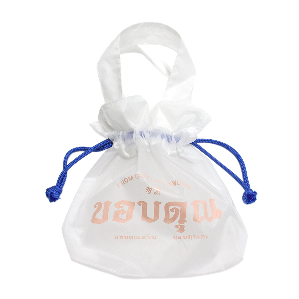 シアーな素材感で中身が少し透ける巾着。