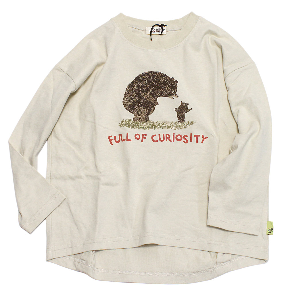 セール 「30%OFF」 長袖Tシャツ "makeyourday メイクユアデイ" くまの親子ラウンドTシャツ アイボリー(IV)