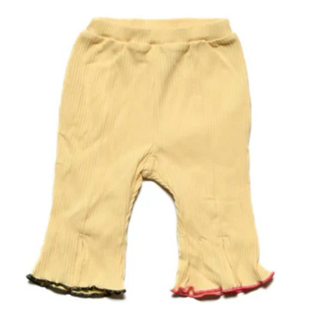 柔らかいリブ素材フレアパンツ。