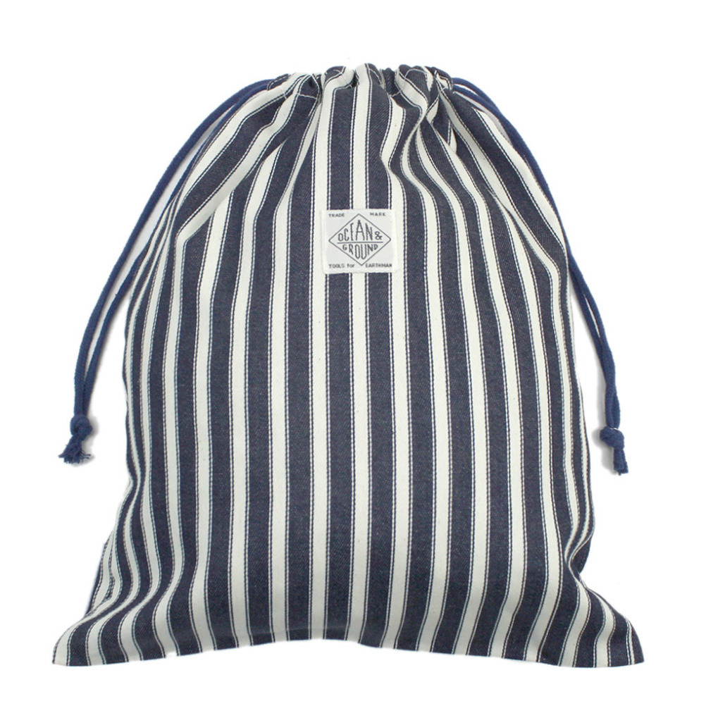 雑貨・小物 "オーシャン&グラウンド" BLUE BLUE 巾着大 ヒッコリー(HI)