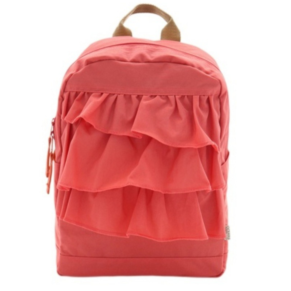四角いカタチのリュックサックに、フリルをたっぷり使用したリュック。