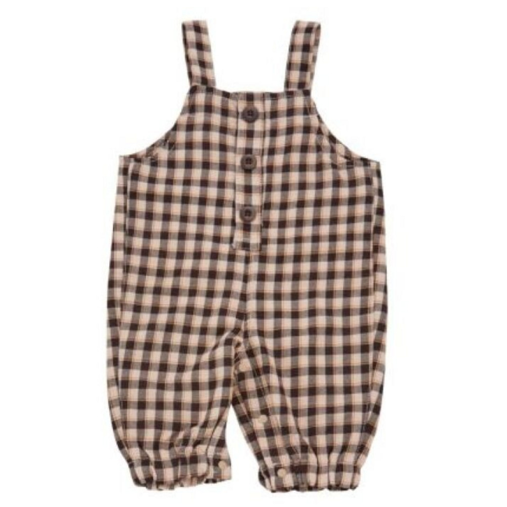 オリジナルのチェック柄が印象的なサロペット。