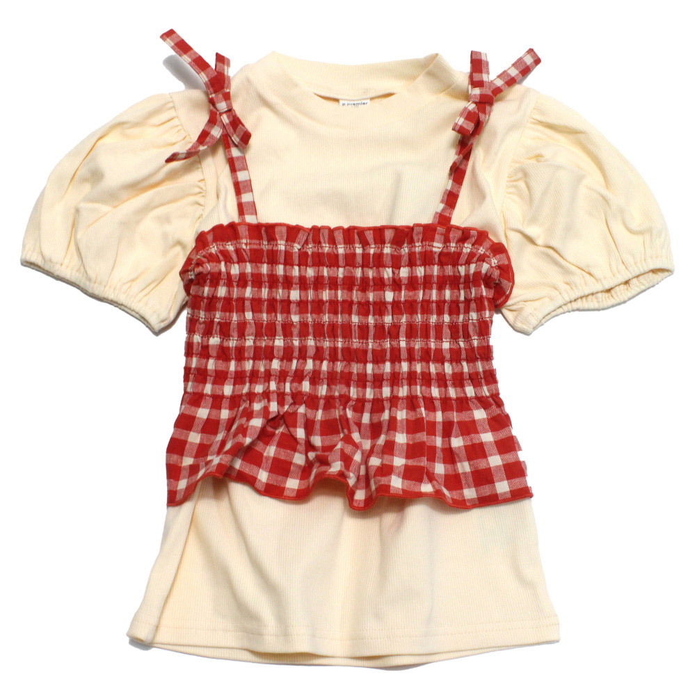 “ピードットプルミエ”の先染めチェックのシャーリングビスチェ&トップスセット