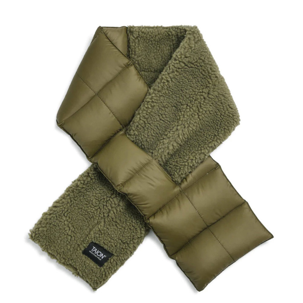 雑貨・小物 "TAION タイオン" マウンテン アシンメトリー ダウン×ボアマフラー オリーブ×ダークオリーブ(ODO)