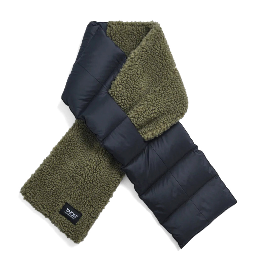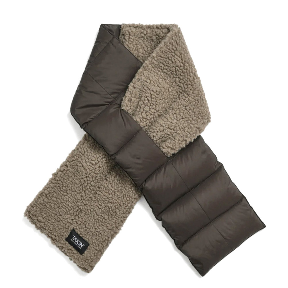雑貨・小物 "TAION タイオン" マウンテン アシンメトリー ダウン×ボアマフラー ベージュ×ブラック(BGB)