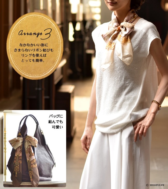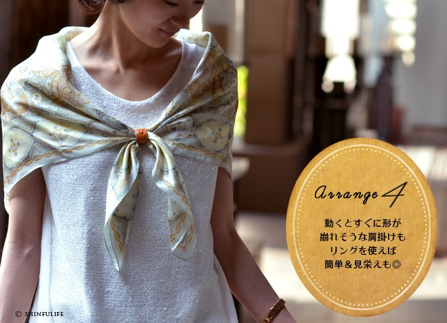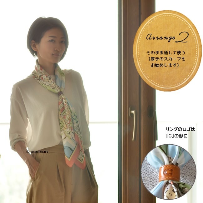 | 忙しい朝でも、コレひとつあれば。誰でもスカーフが簡単&素敵に巻けるスカーフリング。金属タイプよりも軽量なレザー製なのでそのまま通してもリングがするっと落ちる心配がありません。チープな印象のリングはつけたくない、かといって、エルメス等のハイブランドのスカーフリングは簡単に手が出ない、という方にもおすすめな本革製スカーフリングの第2弾です。 通すだけなのでリボン結びも楽に結べるスカーフリング。栃木レザーを使った日本製。中央のロゴは古来ヨーロッパで「幸運や魔除けのお守り」といわれている馬蹄(馬のひづめ)をモチーフに。結び方によってリングが縦になっても横になってもどちらでも対応できるデザインです。 ▼プレゼント ギフト 贈り物に ▼贈る人:お母さん おばあちゃん 義理の母親 ▼贈るイベント:還暦祝い 誕生日 記念日 |