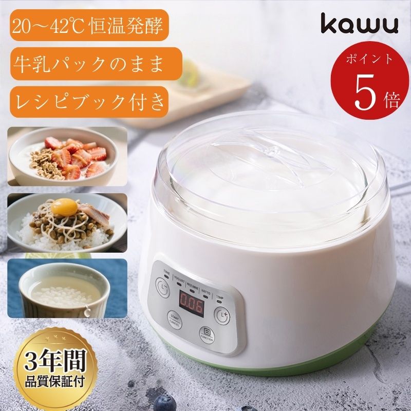 【祭限定 15%OFF&P5倍】 KAWU ヨーグルトメーカー 牛乳パック そのまま作れる 発酵フードメーカー 甘酒メーカー 発酵食品 1L 簡単操作 爆買