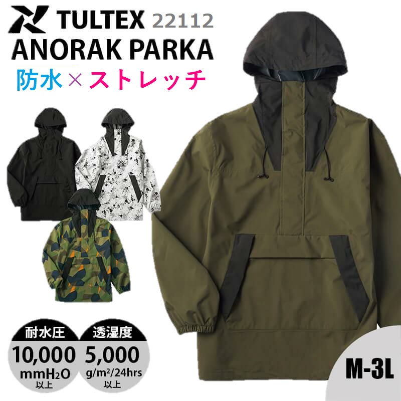 完全防水 アノラック パーカー メンズ 耐水圧10,000mmH2O 透湿度5,000g/m?/24h アイトス タルテックス 22112