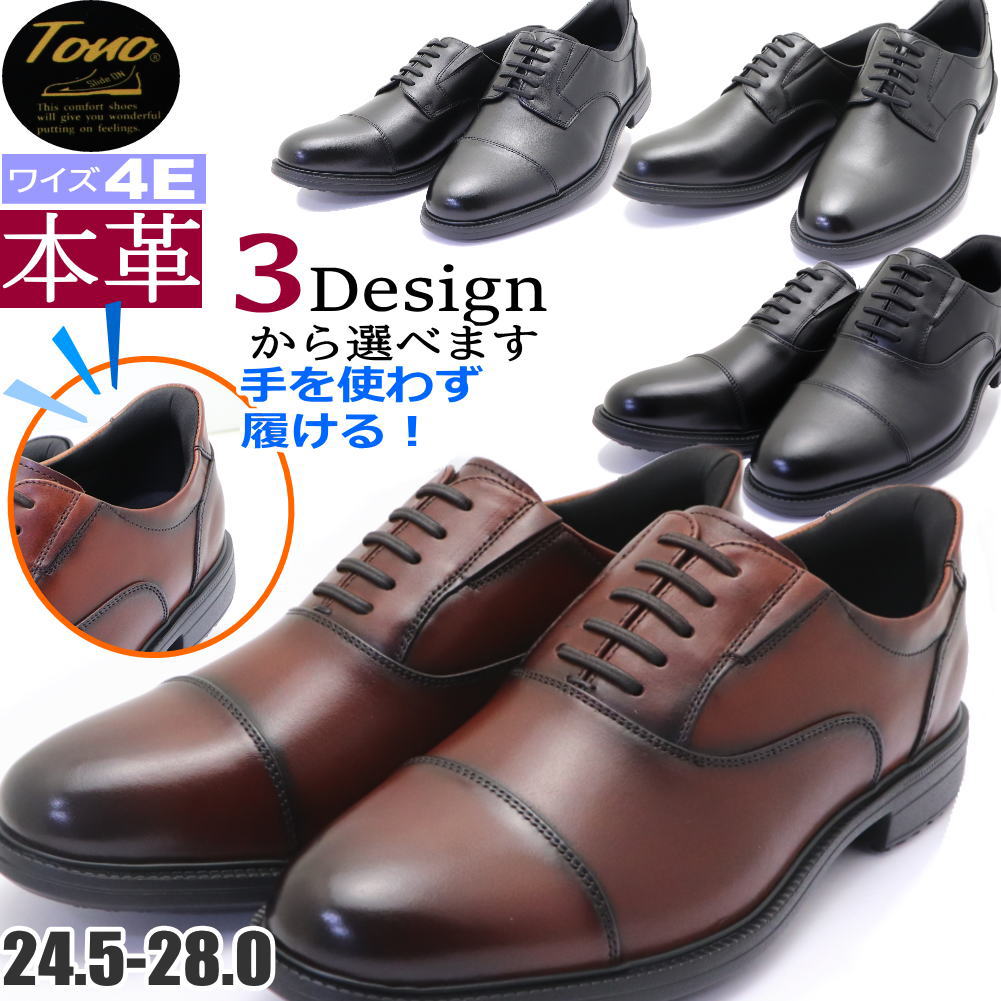 本革 手を使わず履ける 幅広 4E TONO ビジネスシューズ ハンズフリー ストーレットチップ 内羽 外羽 プレーントゥ トノ No.88401 88402 88403