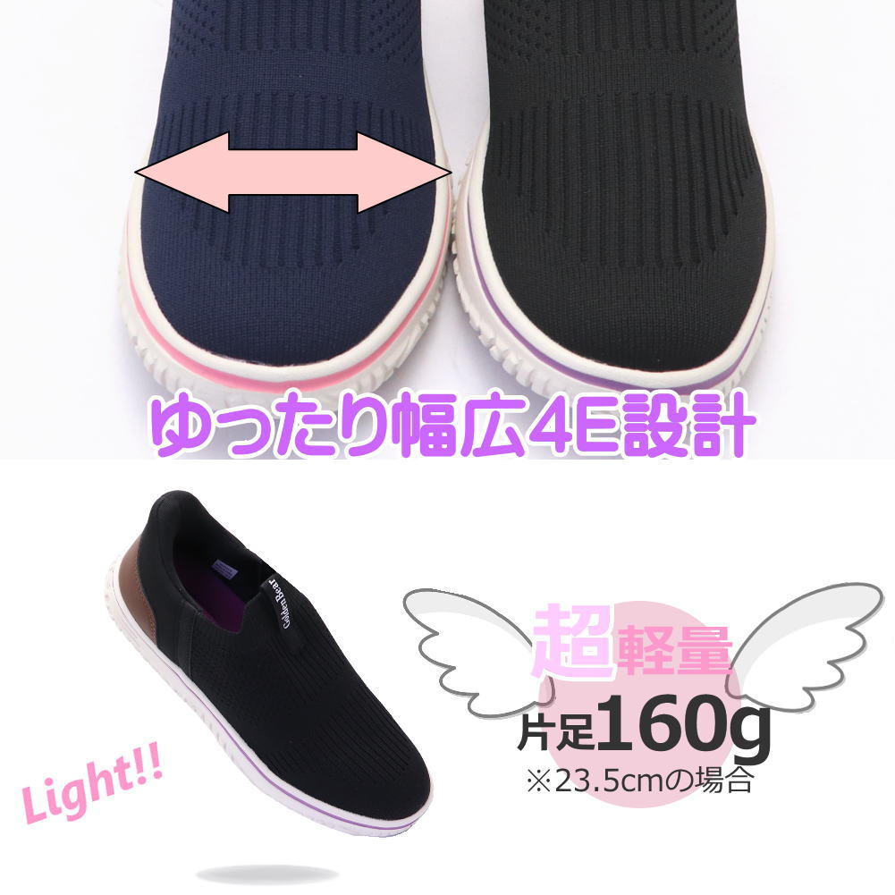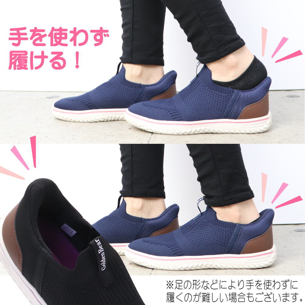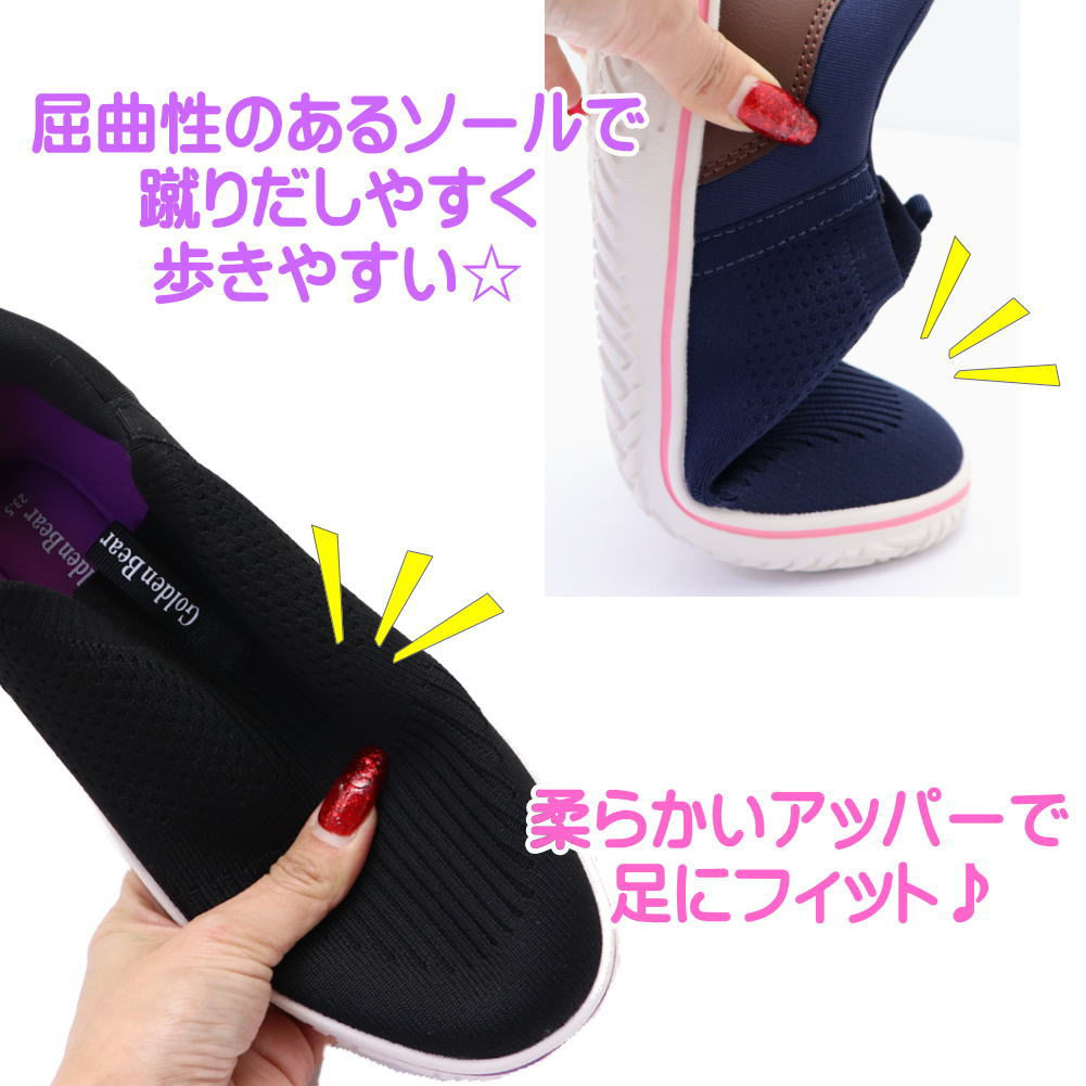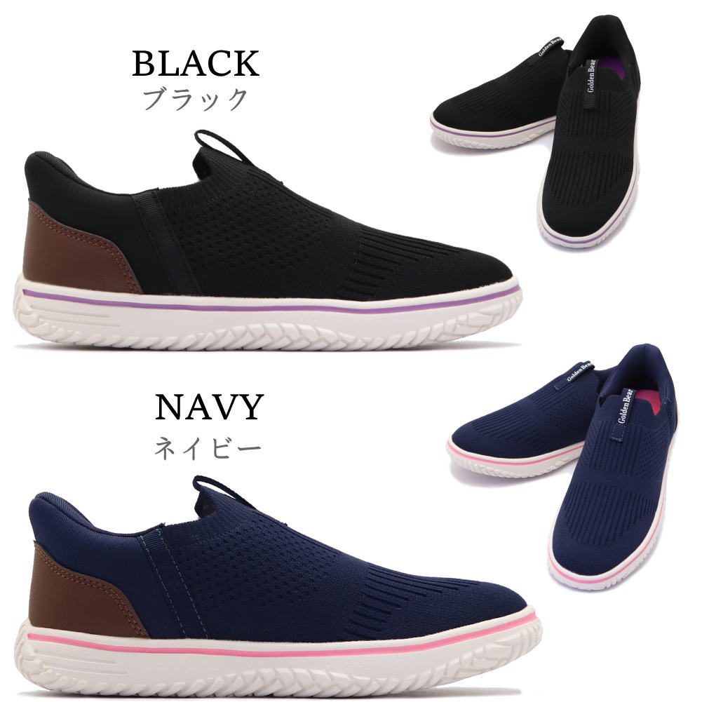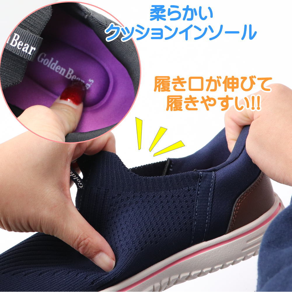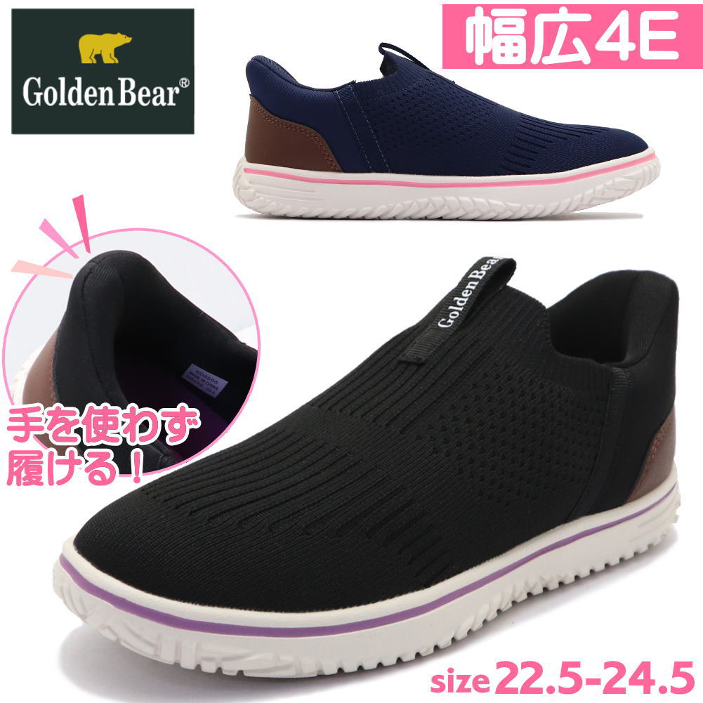 即納 手を使わず履ける レディース スニーカー 幅広 4E 軽量 スリッポン ハンズフリー ゴールデンベアー No.420