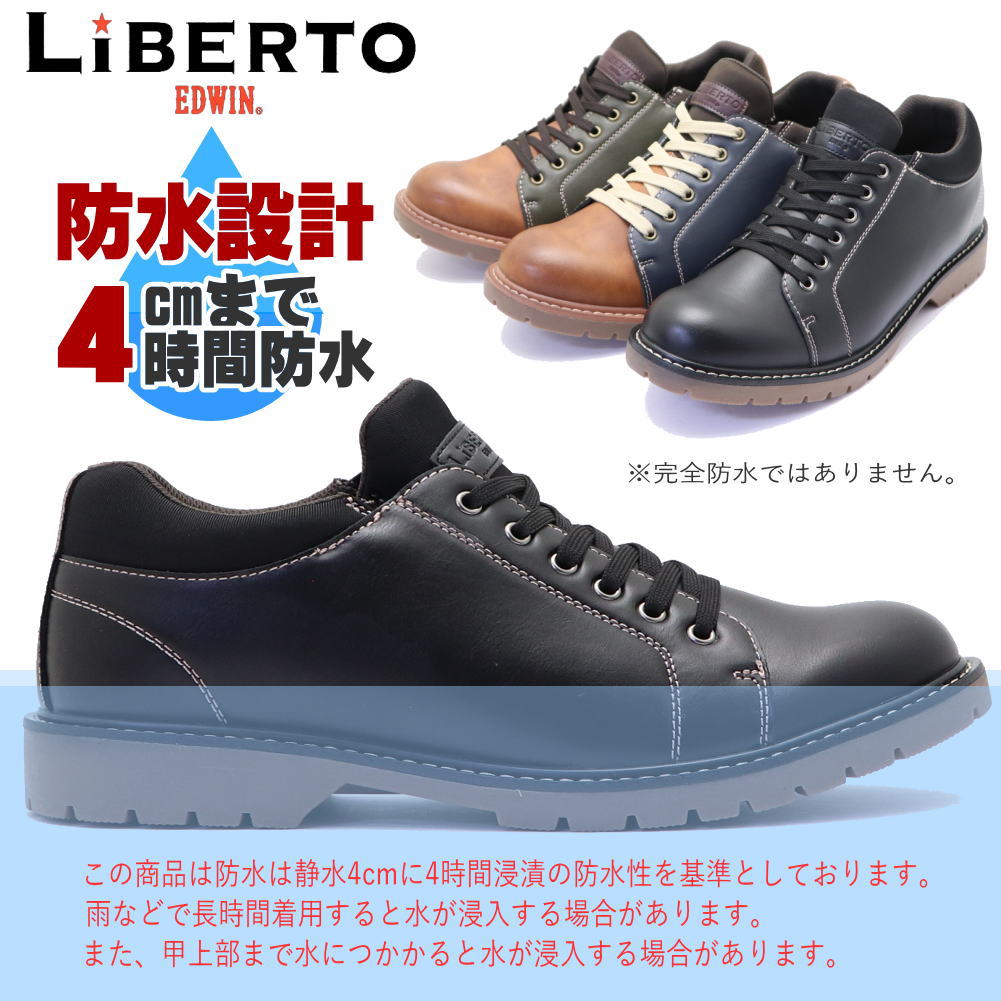 即納 メンズ カジュアルシューズ 防水 防滑 LIBERTO EDWIN リベルトエドウィン サイドゴム スニーカー デッキシューズ スリッポン レースアップ No.50672