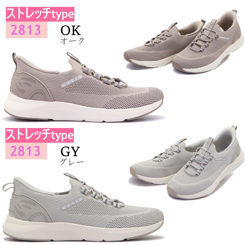 手を使わず履ける MK MICHEL KLEIN レディース スニーカー 柔らかくて履きやすい ストレッチ素材 超軽量 MKミッシェルクラン ワンステップ No.2801 No.2813