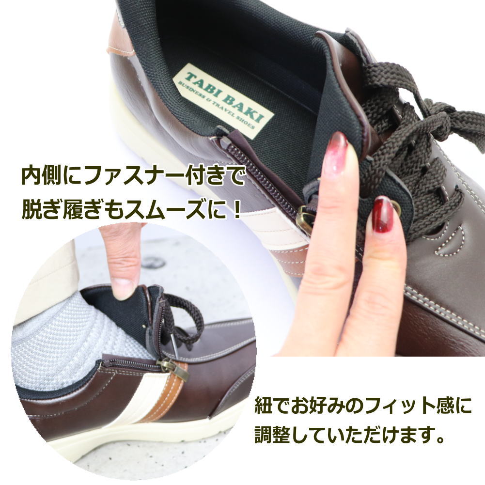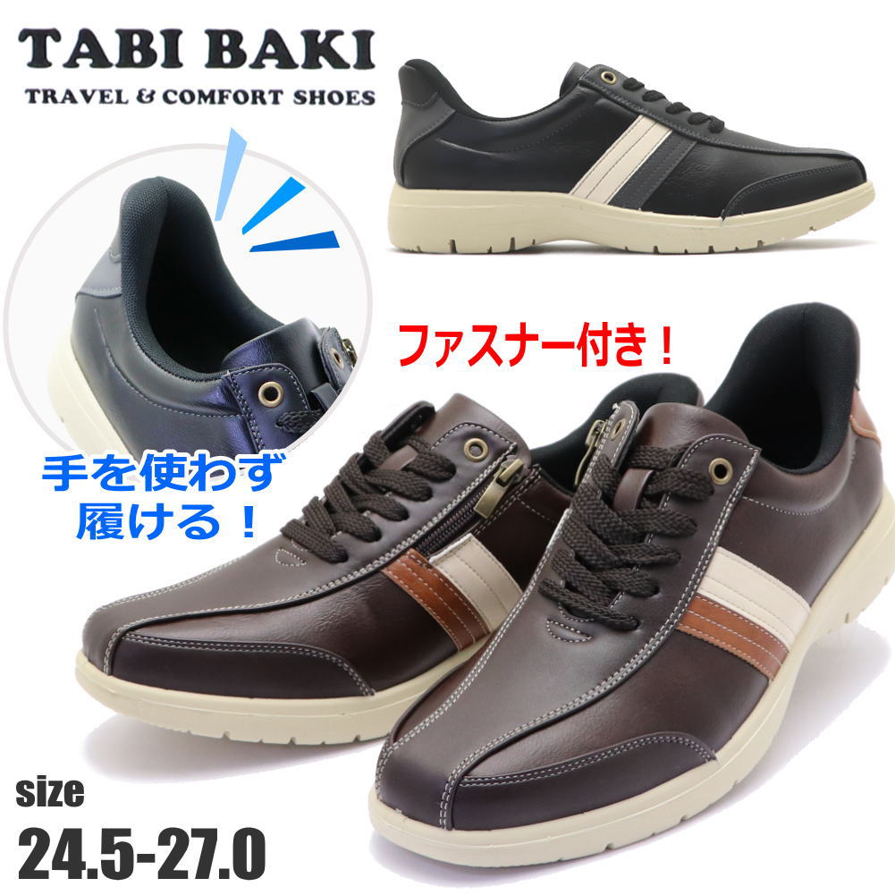即納 TABIBAKI ハンズフリー メンズ カジュアルシューズ ウォーキングシューズ ファスナー付 消臭 抗菌 ふかふかインソール 旅ばき タビバキ No.7523