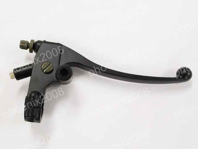 ブレーキ レバー 右 22.2mm ミラーホルダー付 ストップランプ スイッチ付 片側 自転車 バイク ATV 四輪 汎用 M10 P1.25 黒