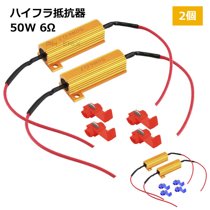 ハイフラ防止抵抗器 ハイフラ抵抗器 12V車用 50W 6Ω 2個 エレクトロタップ 4個 LED バルブ ウィンカー 汎用 警告灯 キャンセラー