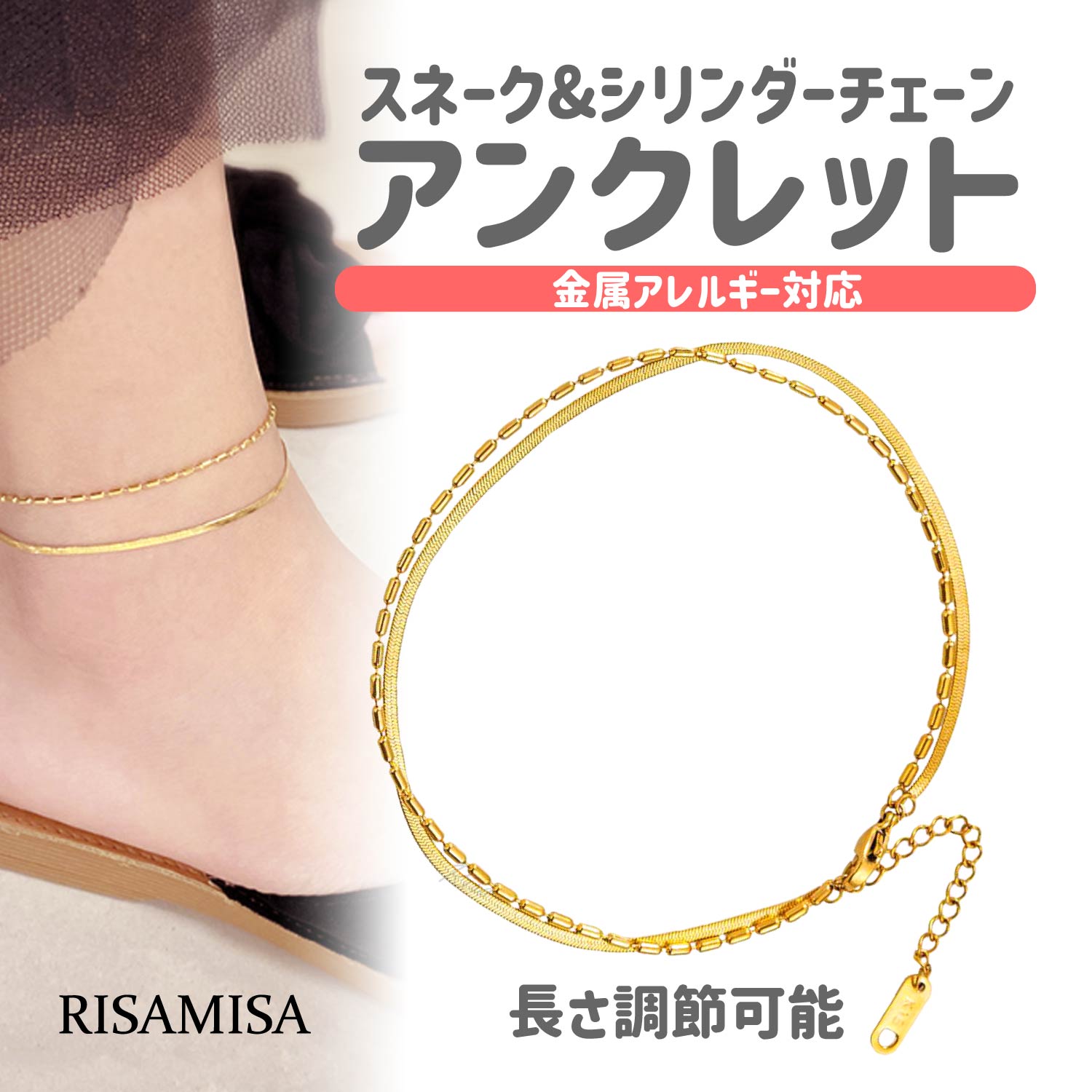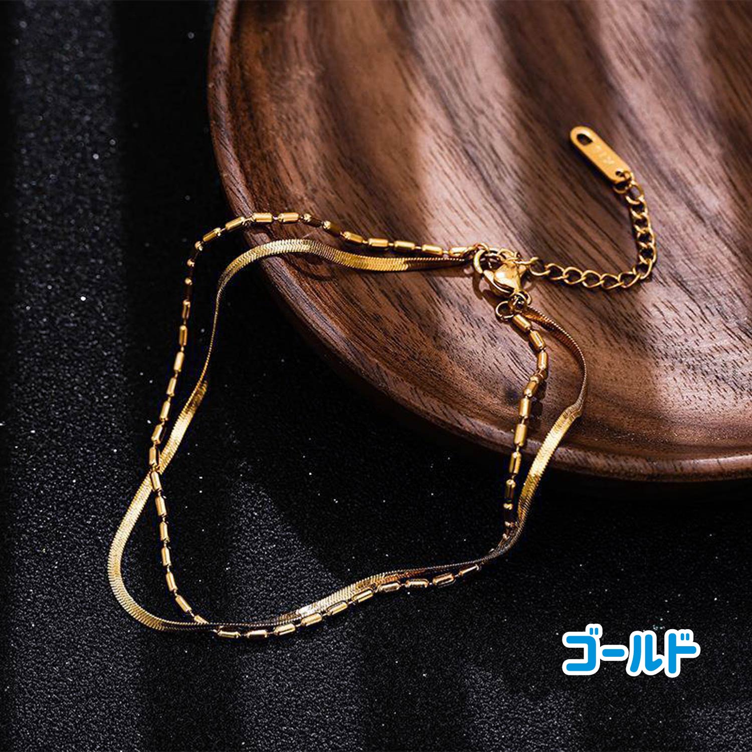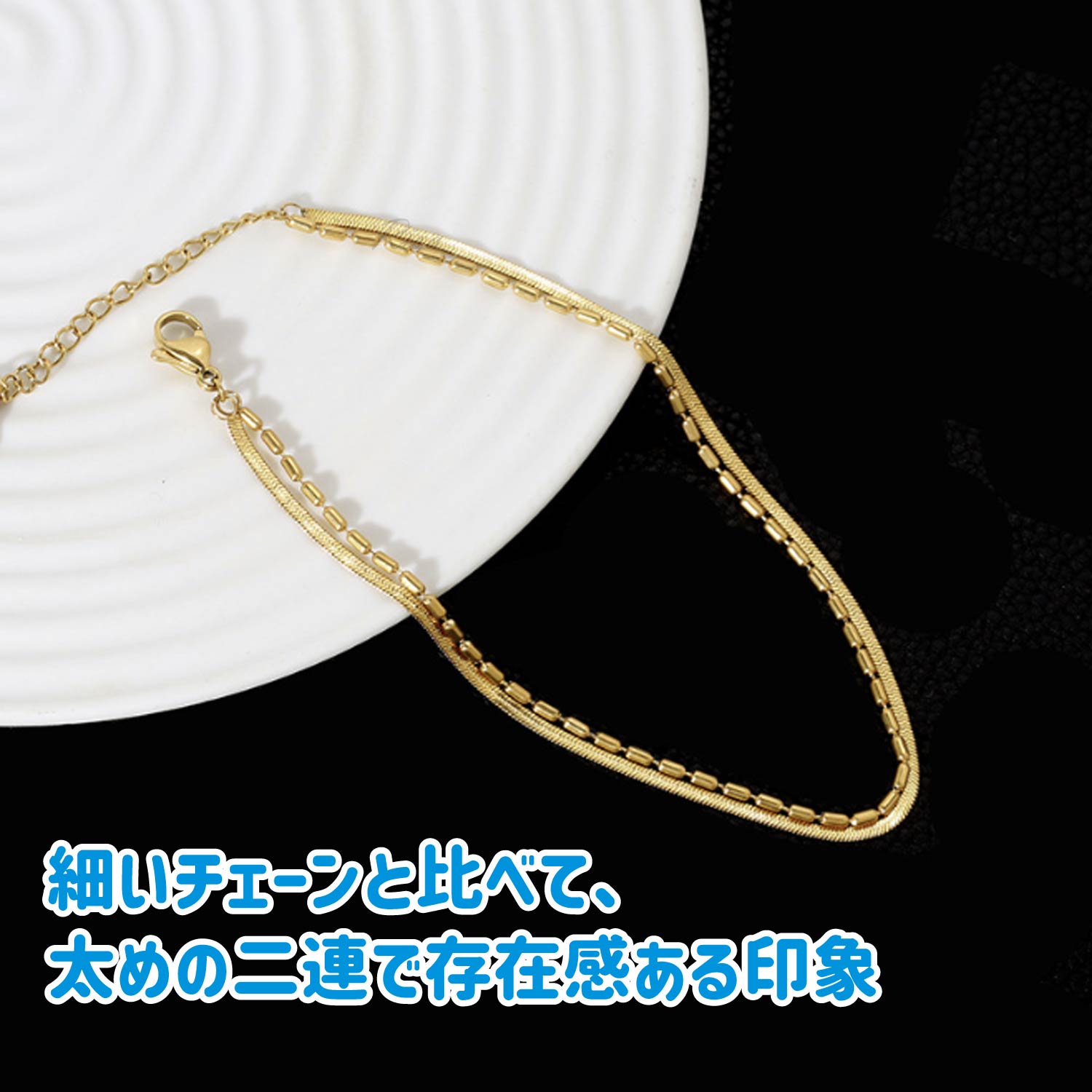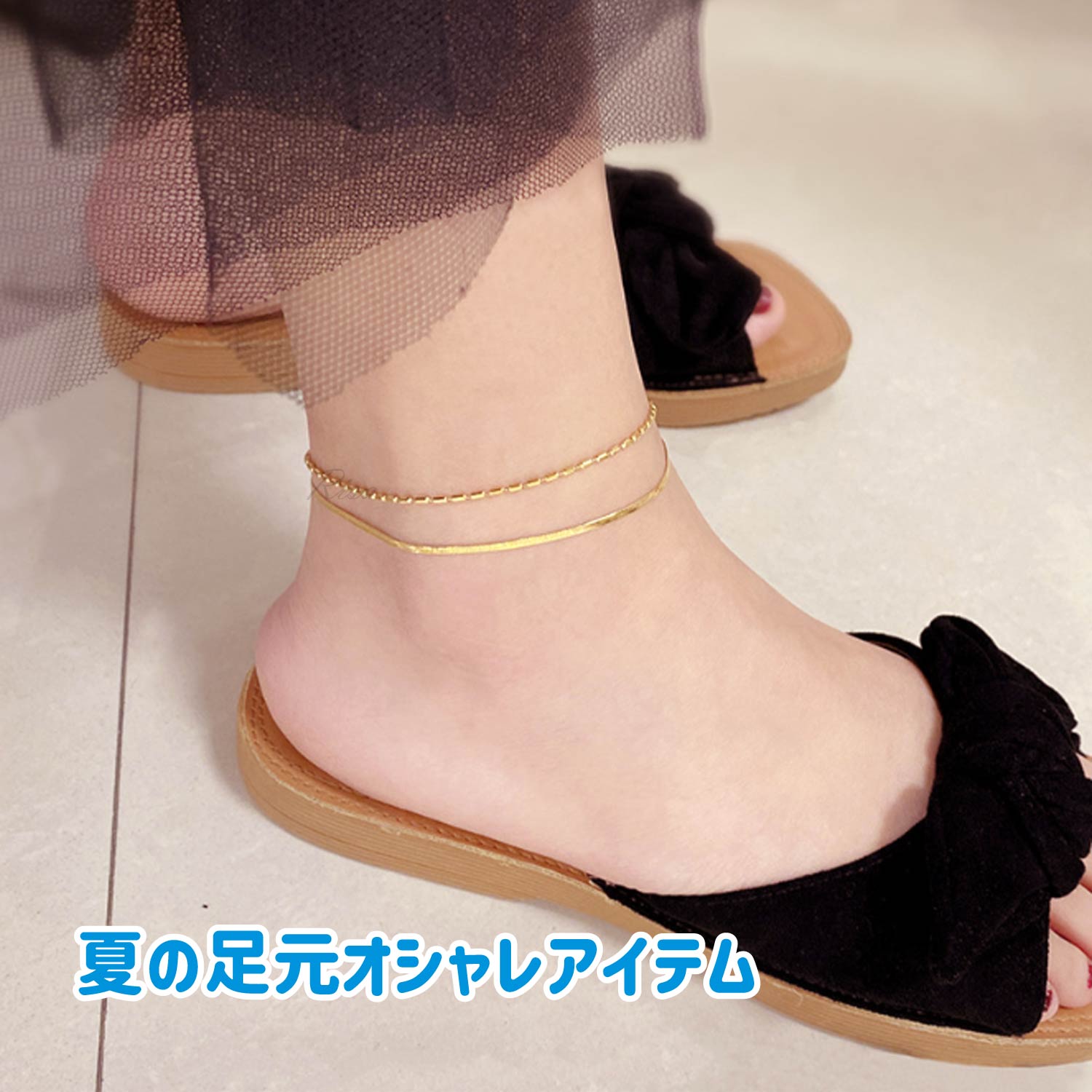 アンクレット 金属アレルギー対応 スネークチェーン テーパーチェーン 2連 つけっぱなし 夏 レディース シリンダーチェーン サージカルステンレス
