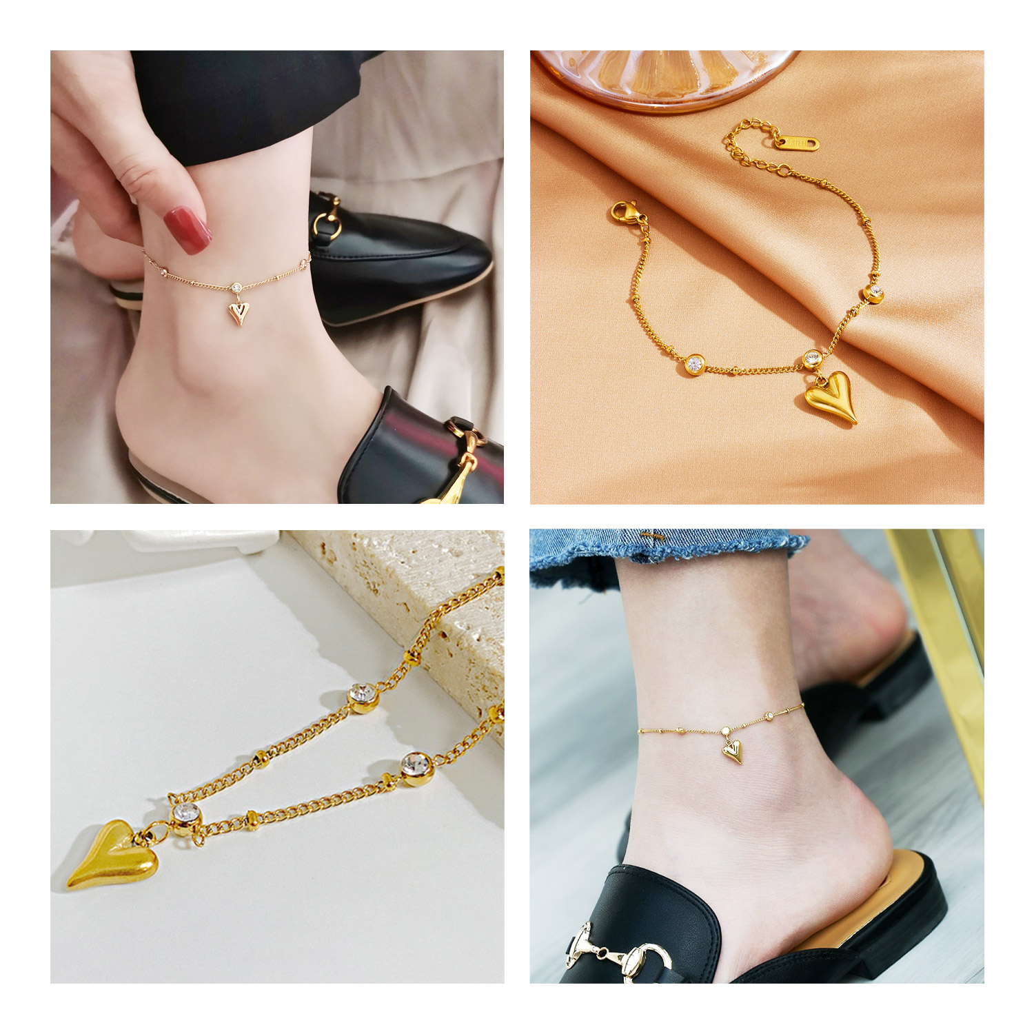 アンクレット チェーン 金属アレルギー対応 ハート ラインストーン サージカルステンレス レディース 華奢 大人 上品 ゴールド サンダル