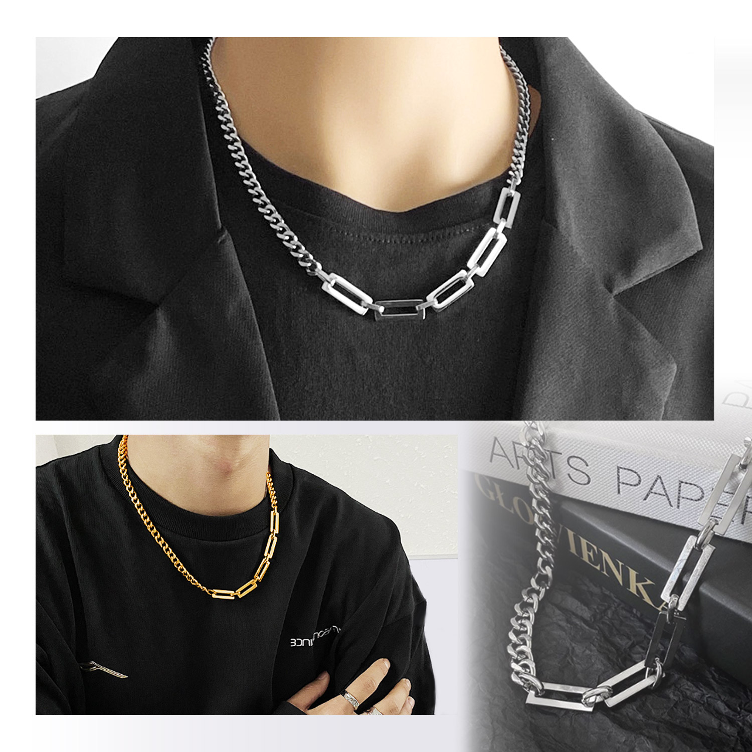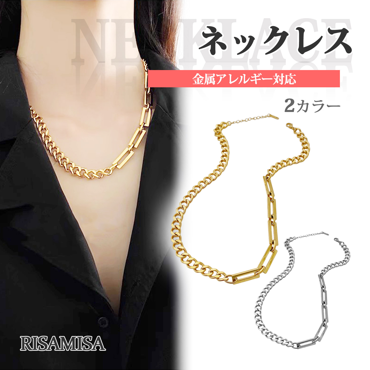 ネックレス コンビ チェーン 金属アレルギー対応 喜平 アシンメトリー サージカルステンレス レディース メンズ シンプル 太め カジュアル