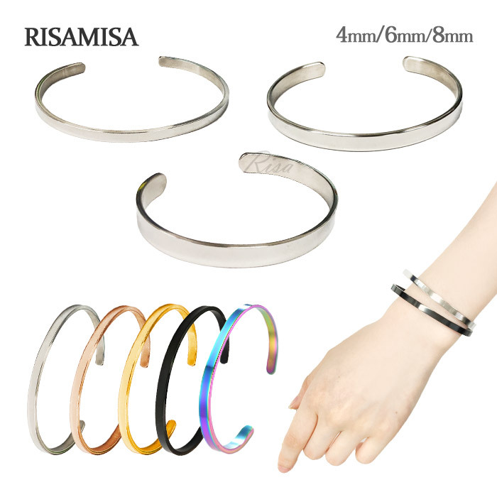 バングル シンプル プレーン 平打ち 4mm 6mm 8mm 金属アレルギー 対応 サージカルステンレス レディース メンズ おしゃれ カジュアル ブレスレット