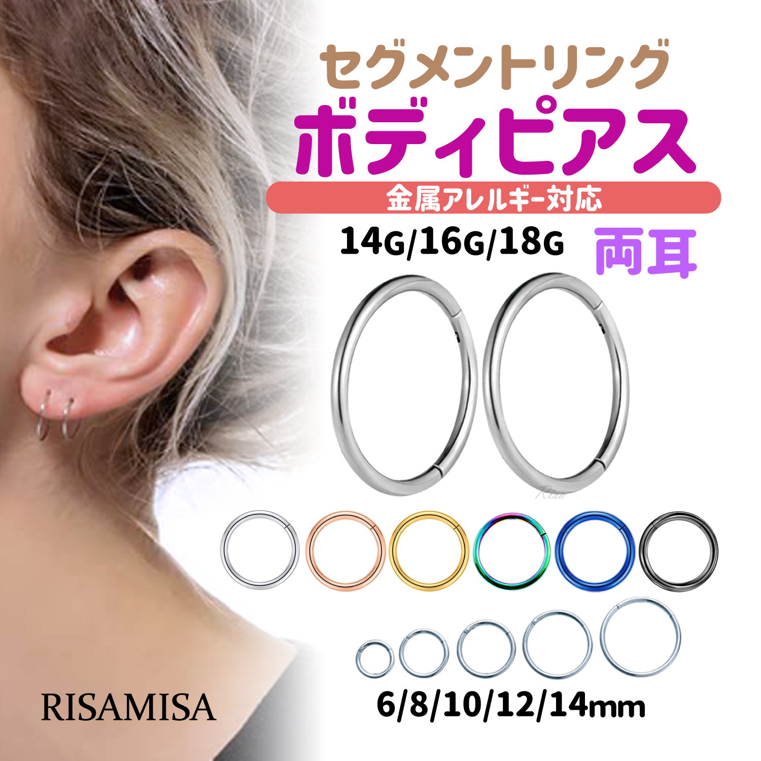 ボディピアス 18G 16G 14G セグメントリング 両耳セット 軟骨ピアス 金属アレルギー 対応 サージカルステンレス セグメントクリッカー