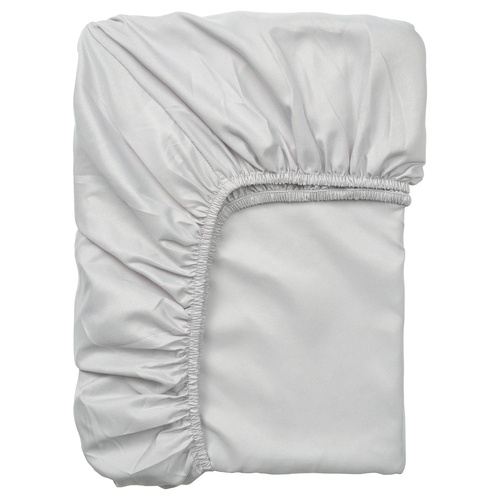 グレーのBARGLIM ベリリム ボックスシーツでぐっすり眠りましょう。 とても柔らかで、起毛仕上げの表面がさらに心地よさを高めます。リサイクルポリエステル100%。お手入れが簡単で、シワになりにくく、縮みにくい素材です
