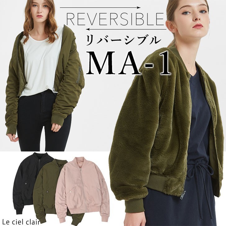 ボア アウター リバーシブル MA-1 ブルゾン ファー ジャケット 春 ゆったり 防寒 厚手 レディース エムエーワン ma1 184-32027