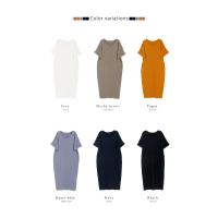 綿100% ミモレ丈 ワンピース レディース 半袖 Vネック サイドスリット 春 部屋着 ルームウェア上下 柔らかい カットソー 192-13032