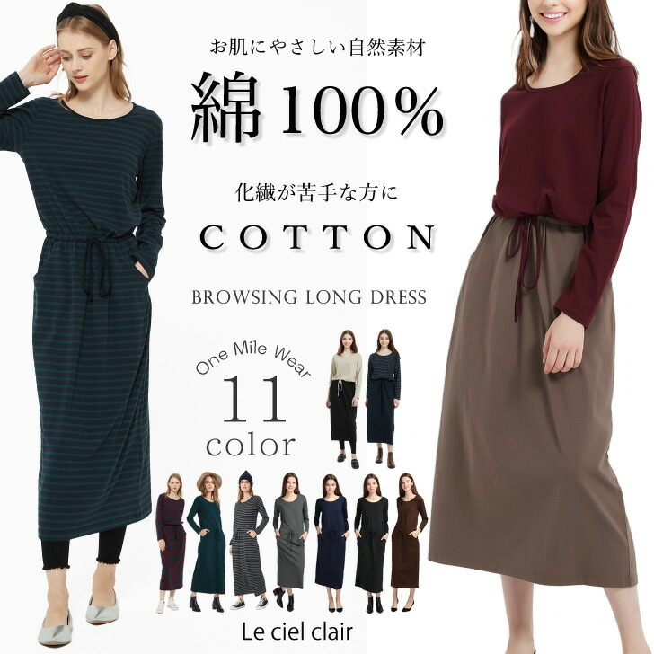 綿 100 ワンピース 体型カバー 着痩せ 長袖 ロング マキシ コットン 春 パジャマ ルームウェア レディース 30代 40代 ファッション C1609-1030A