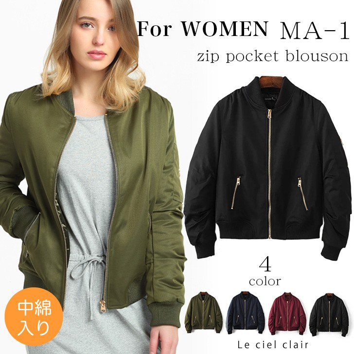 ZIPポケット 中綿入り MA-1 エムエーワン 春 防寒 ma1 レディース ブルゾン ジャケット アウター ショート丈 ジップ 30代 40代 ファッション C1712-1543A1