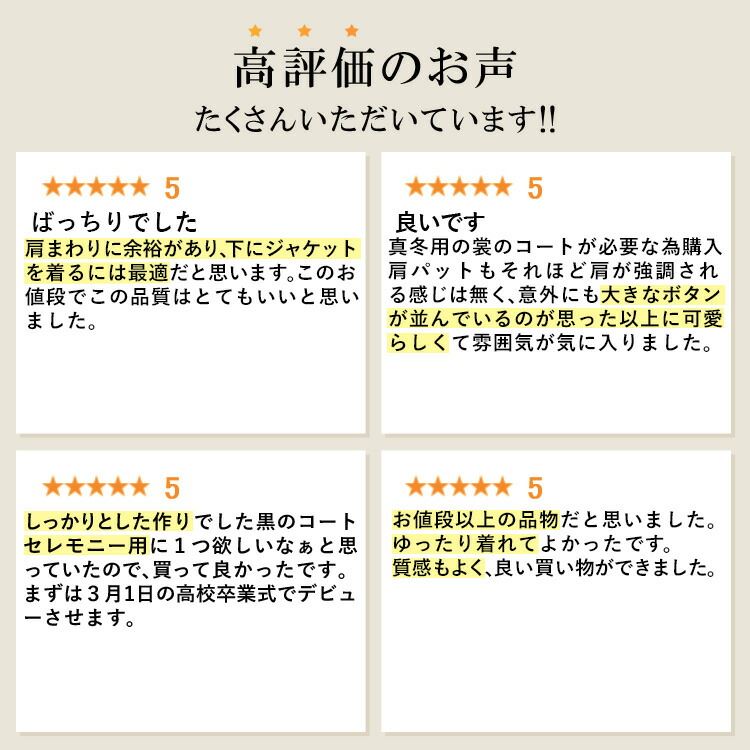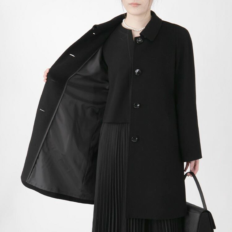 | 素材の特徴 | ・こちらの製品は高級獣毛のカシミヤブレンド素材を使用 ・ブラックフォーマルにも対応できる独自の黒染め技法を使用 |