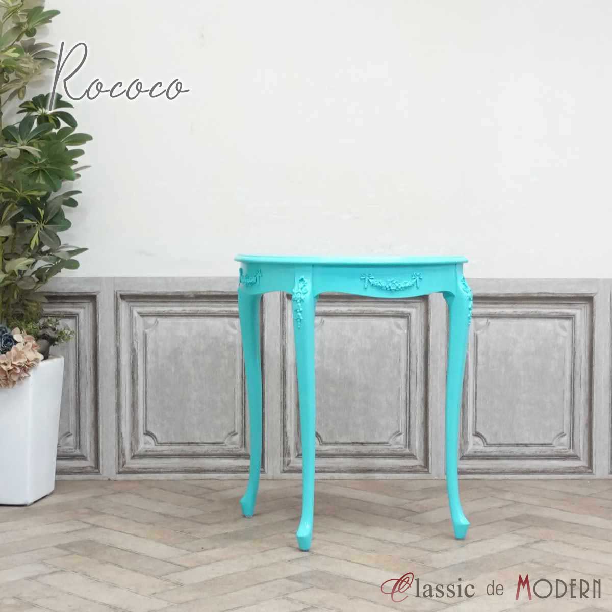 コンソールテーブル アンティーク ロココ サイドテーブル 猫脚 姫系 店舗什器 半円 ハーフムーン コンパクト プチ ミニ 4119-M-61