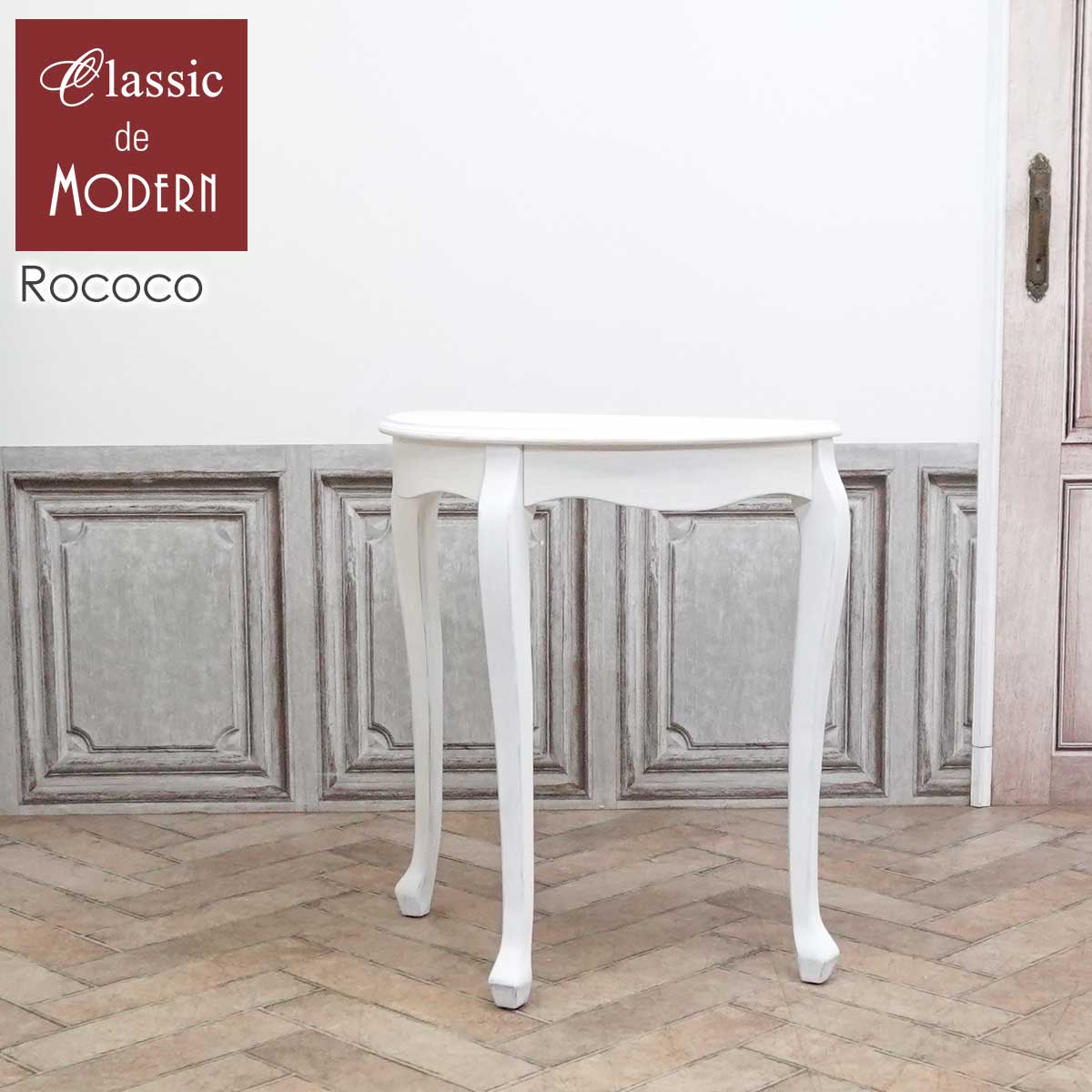 コンソールテーブル アンティーク ロココ サイドテーブル 猫脚 姫系 店舗什器 半円 ハーフムーン コンパクト プチ ミニ アンティーク加工 E4119-M-71