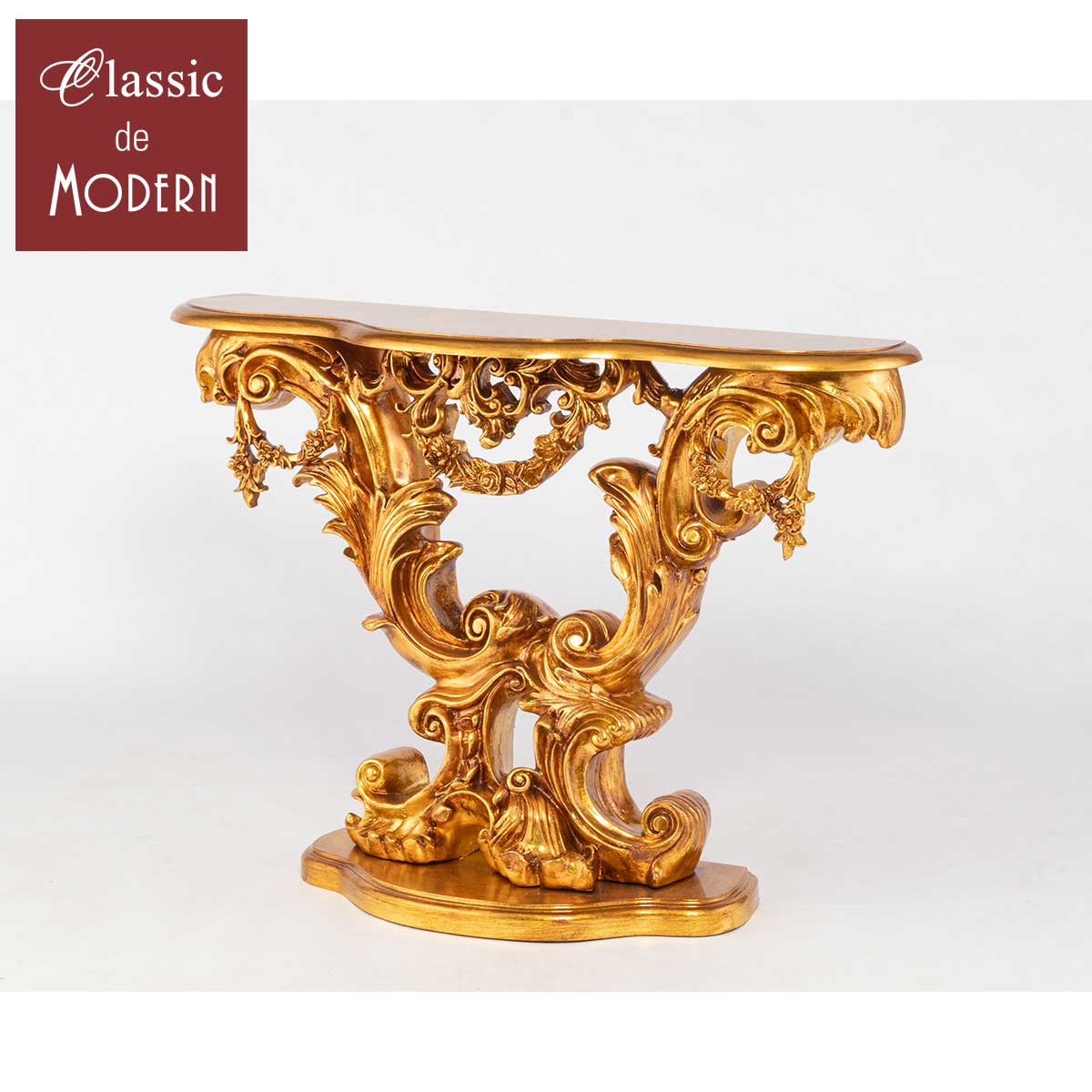 アンティーク風家具 コンソール テーブル ロココ サイドテーブル エレガント 豪華 スタジオ ロビー 舞台 リビング ホテル ゴールド FP4001-G-1