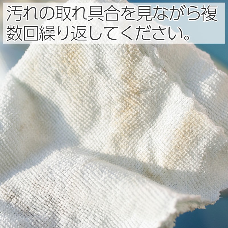 (2)2〜3分経過したら濡らしたマイクロファイバークロスで拭き上げる