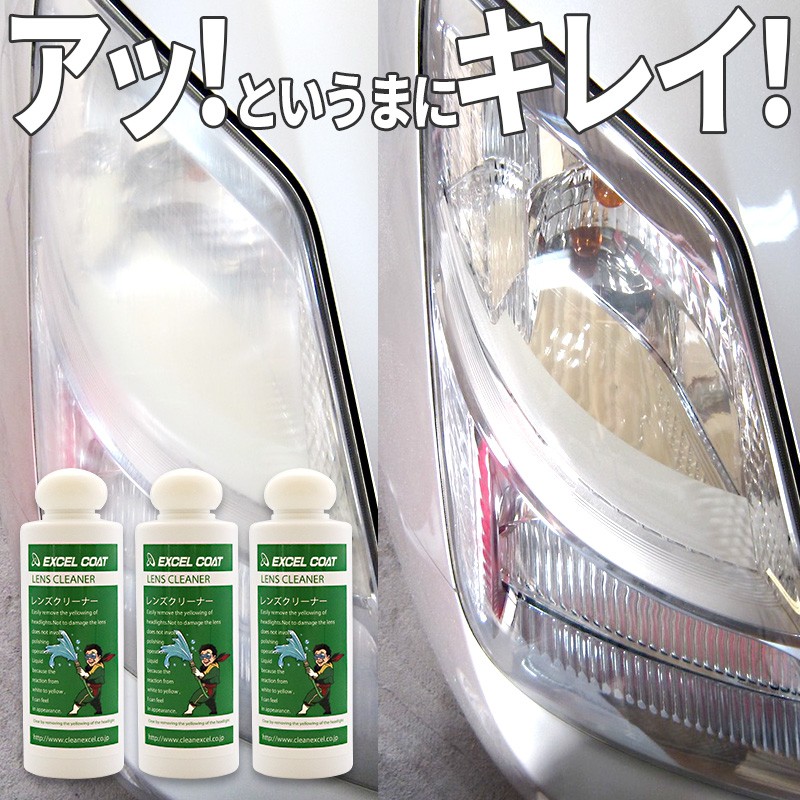 【3本セット】エクセルコート ヘッドライト レンズクリーナー200g×1本スポンジ&クロス付き ランプ 黄ばみ 白濁 曇り 除去 新車の輝き EXCELCOAT