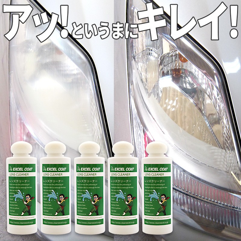 【5本セット】エクセルコート ヘッドライト レンズクリーナー200g×1本スポンジ&クロス付き ランプ 黄ばみ 白濁 曇り 除去 新車の輝き EXCELCOAT