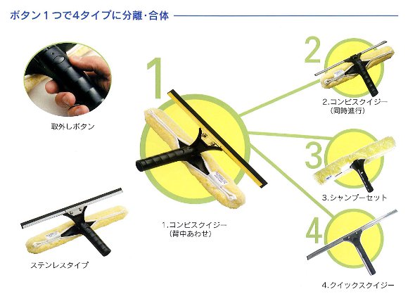 ●長いリーチポールを使用する際も、ガラス面が乾く前にスクイジーで引くことが出来ます。