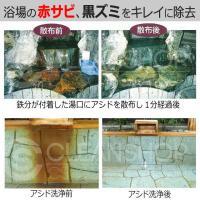 | ご使用方法 | ジョウロに80g(1袋)を入れ、お湯または温泉で(水では効果が半減します)溶かして散布してください。 30〜60秒で分解します。最後に軽くすすいで流してください。 ガンコな錆には一度濡らしてから粉末を直接まぶし、しばらく放置してください。 |
