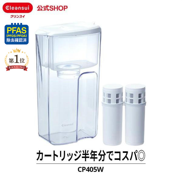 TVCM公開中 浄水器 クリンスイ ポット型 1.4L ポット浄水器 浄水ポット カートリッジ2個付き 浄水 塩素除去 コンパクト PFAS ピーファス PFOS PFOA [CP405W-WT]